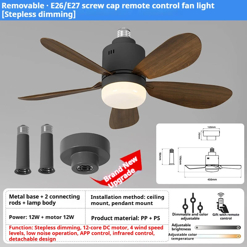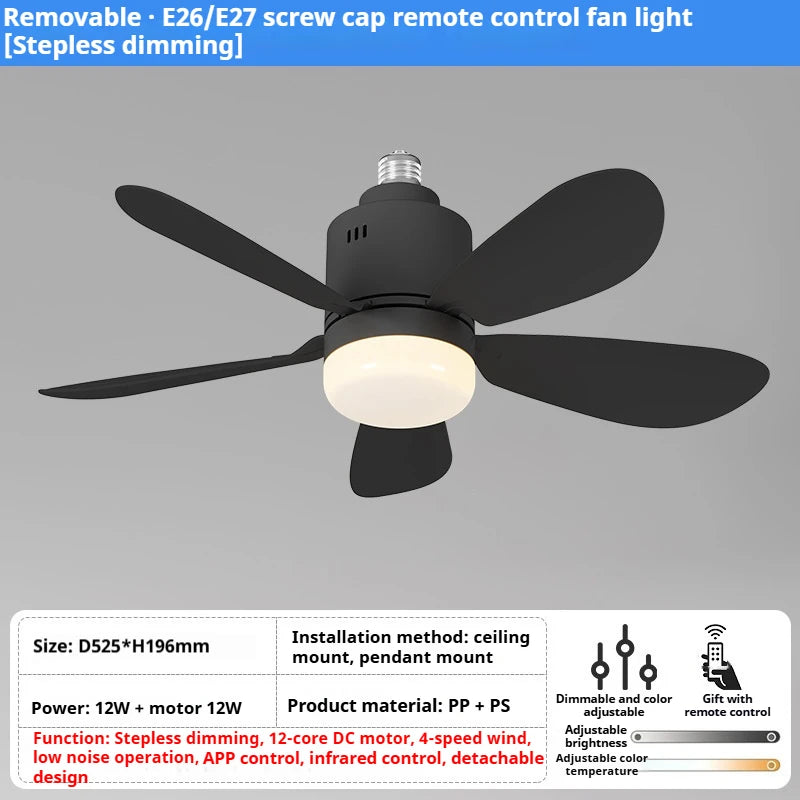 Unlike traditional ceiling fans, the ceiling fans with lights and remote can be easily installed like a normal light bulb. Compatible with most standard E26/E27 light bulb sockets. Perfect for bedrooms, kitchens, dining rooms, indoor and outdoor areas, farmhouses, garages, etc.