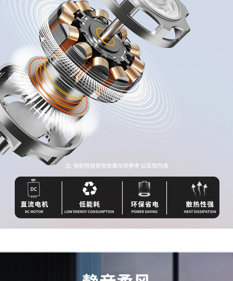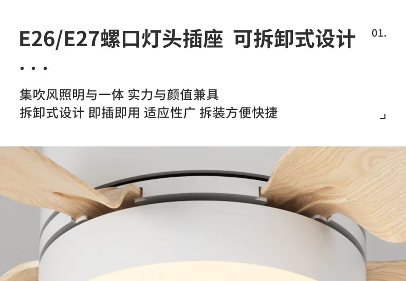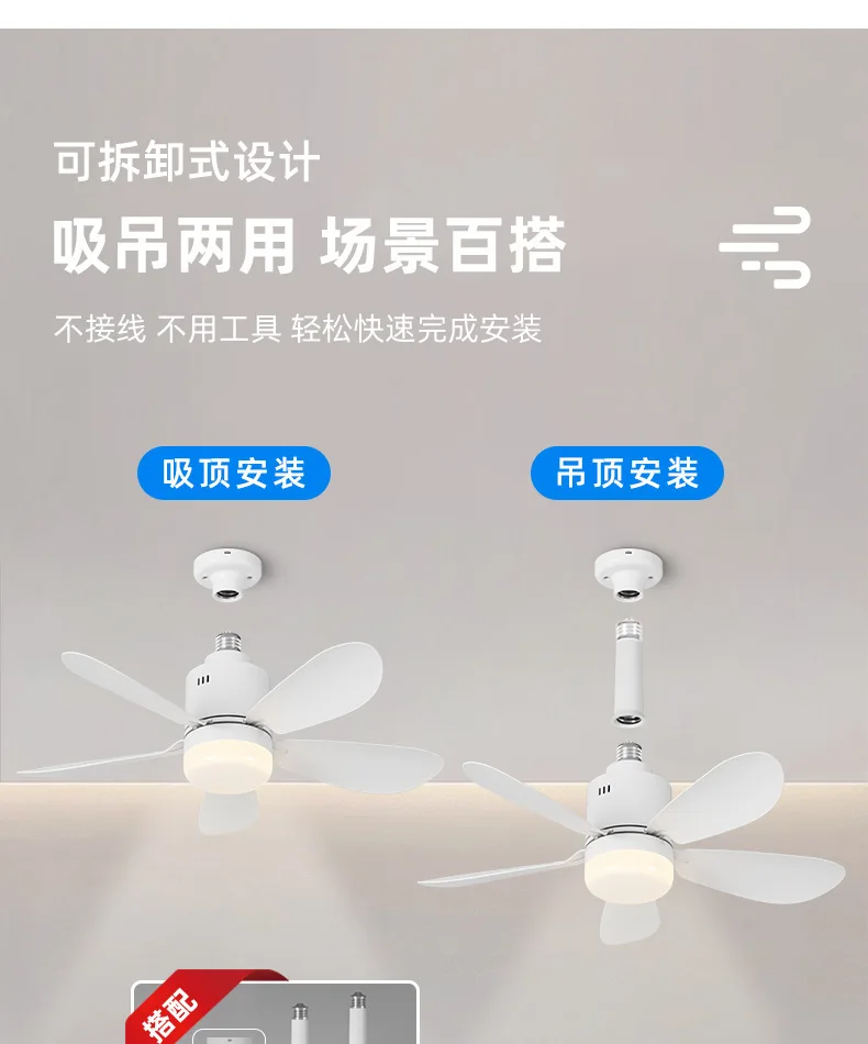 This socket fan has a simple design, combining a fan and an LED light in one, and has a diameter of 52.5cm. The DC motor has less friction and higher efficiency when running, which can achieve natural wind and low noise. It is very suitable for installation in quiet places such as bedrooms or living rooms.