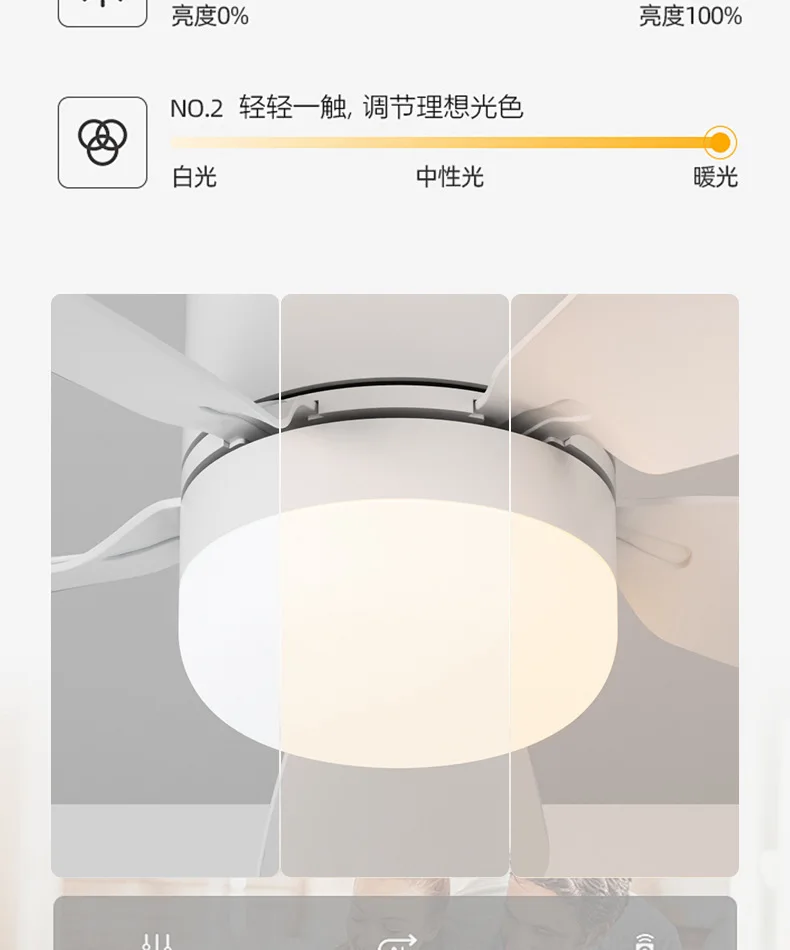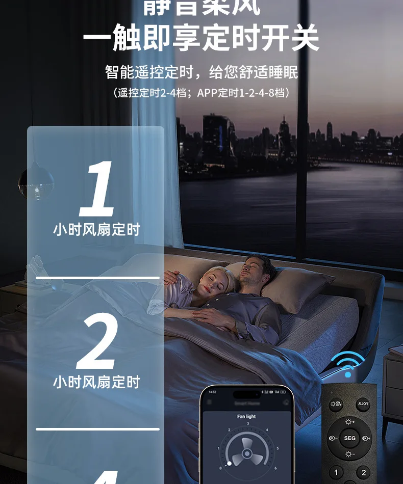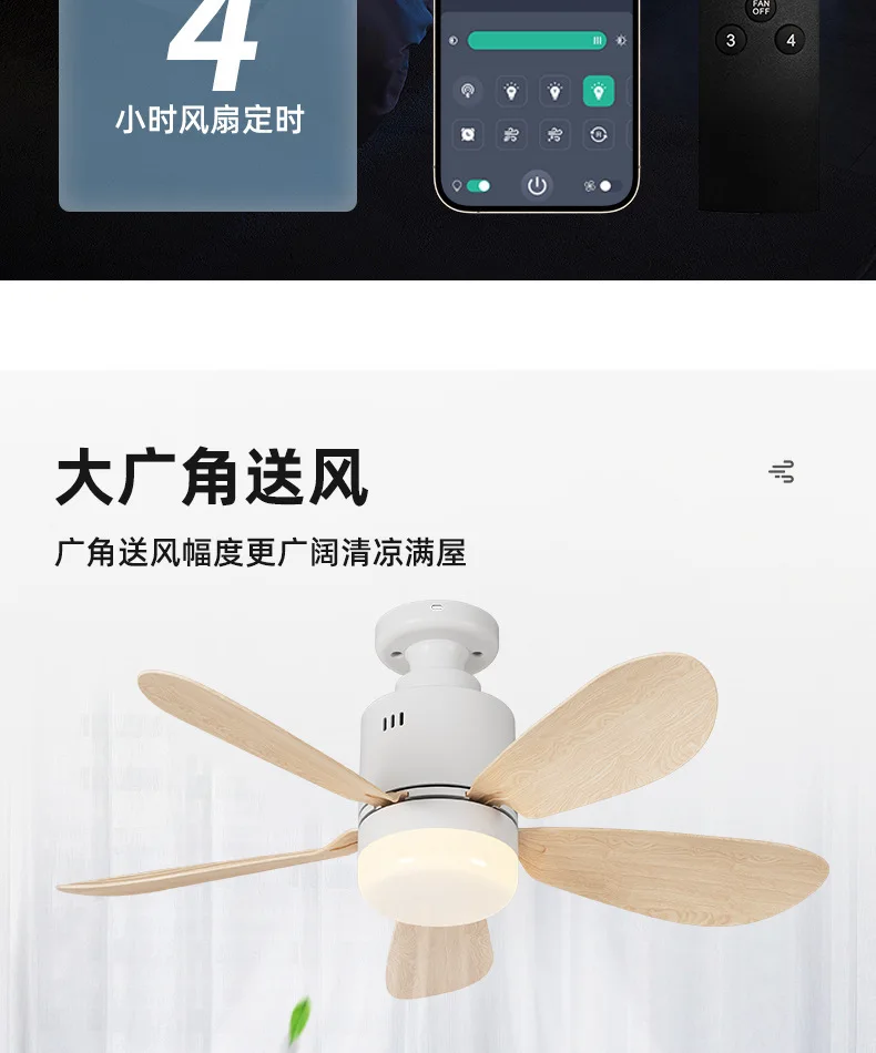 The ceiling light with remote comes with a smart remote control and app, which can be controlled by remote control or on the phone using the app. Adjustable brightness, light color, four wind speeds, the fan and light can be turned on at the same time. You can set a scheduled shutdown time to customize a comfortable sleeping experience and save energy.